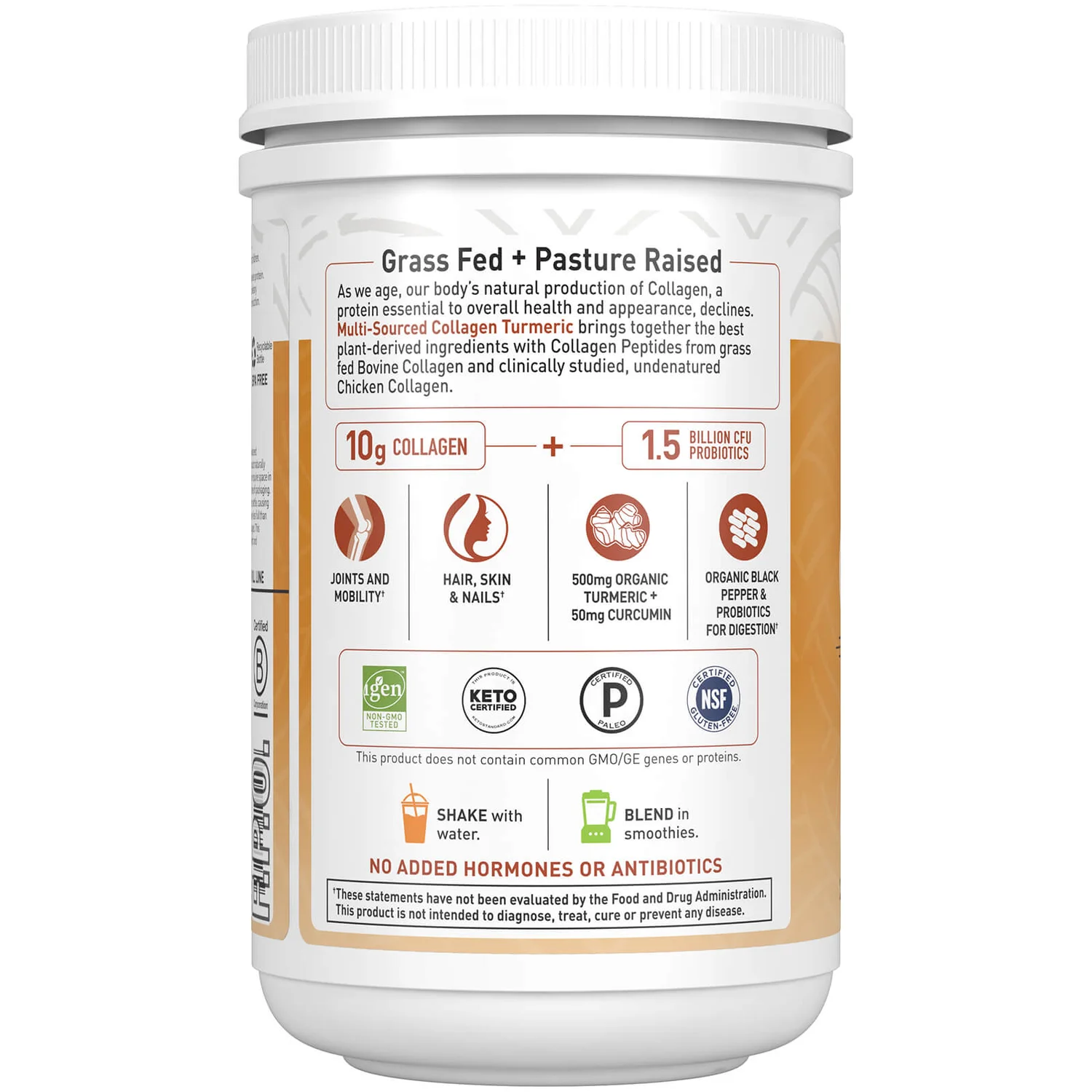 Our Multi-Sourced Collagen Turmeric offers powerful plant-derived ingredients together with highly absorbable collagen peptides from grass-fed bovine collagen and clinically studied, undenatured chicken collagen.