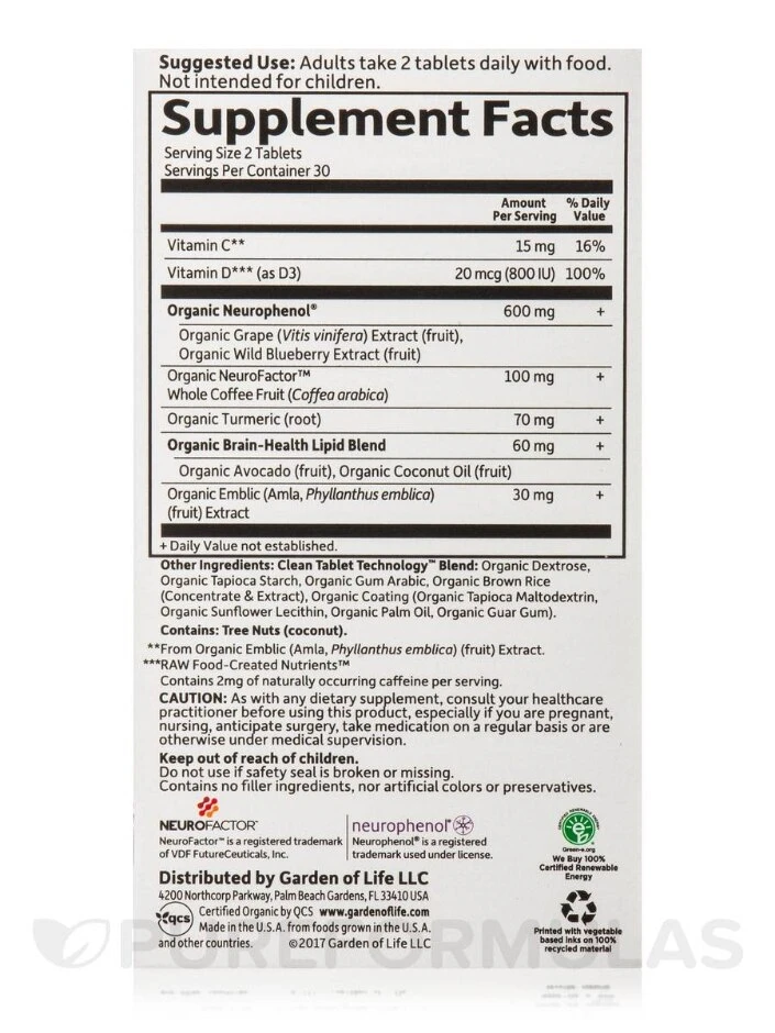 Keep your mind sharp as you age with Dr. Perlmutter’s Brain Health Formula. Packed with clinically studied Organic Grape Extract, Organic Wild Blueberry Extract, and Organic Whole Coffee Fruit, this unique formula also includes essential nutrients and good fats to promote clear thinking, sharper focus, and improved memory. Stay on top of your game with the support your brain needs to thrive.