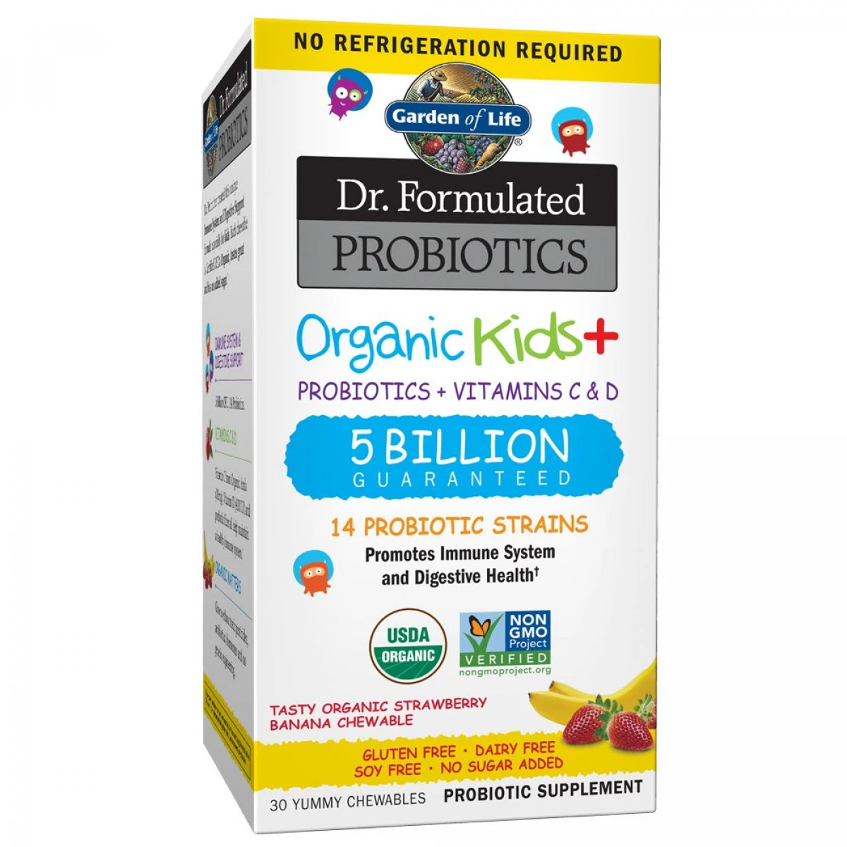 - PROBIOTICS FOR KIDS: Strawberry Banana flavored chewable, grown without toxic pesticides, antibiotics, hormones and no genetic engineering