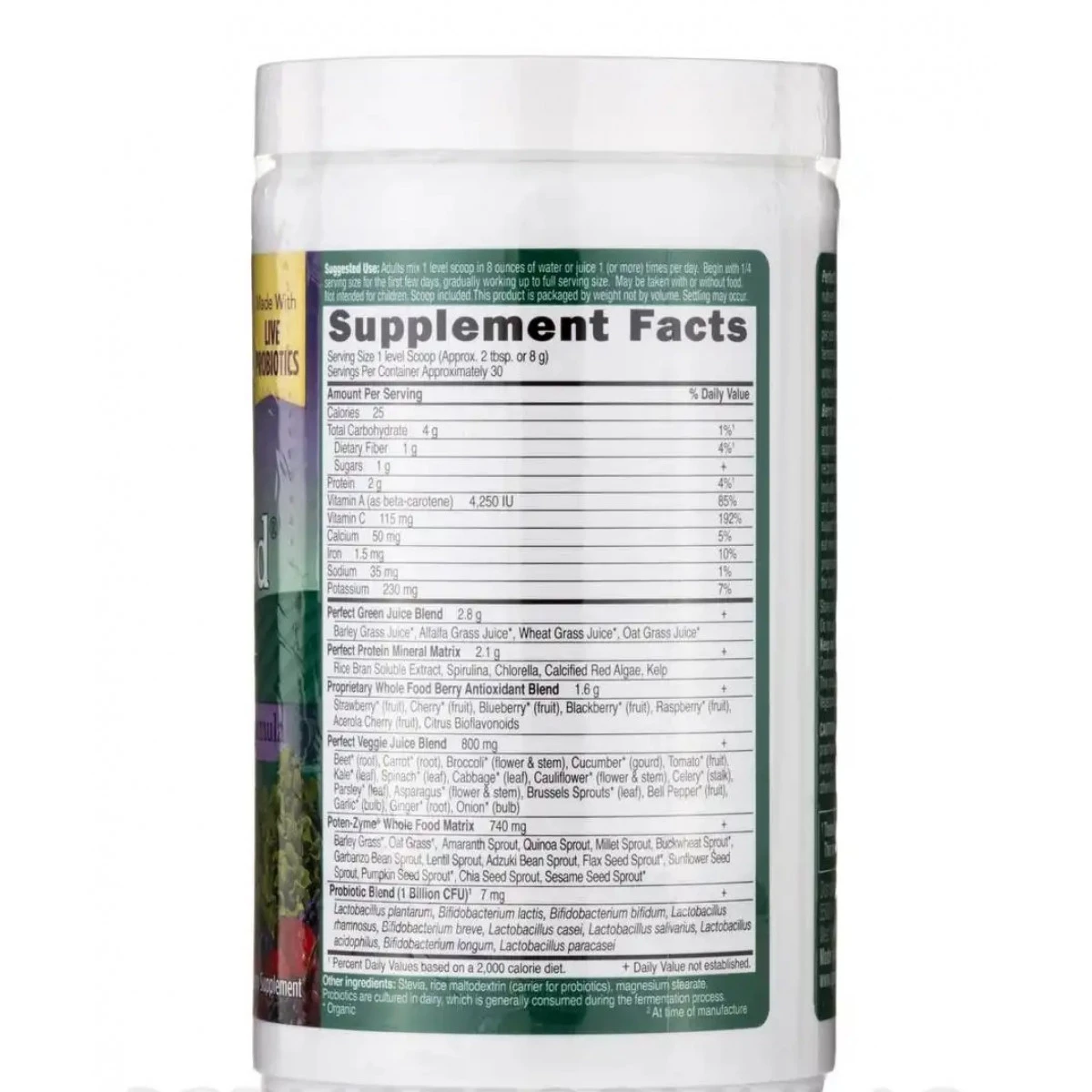 Provide important nutrients and antioxidant protection to your body with Perfect Food® Berry 8.5 oz (240 Grams) Powder from Garden of Life®. The presence of various vitamins and minerals in this dietary supplement may aid digestion‚ support heart and brain health‚ increase blood hemoglobin levels‚ and keep your bones and teeth strong.