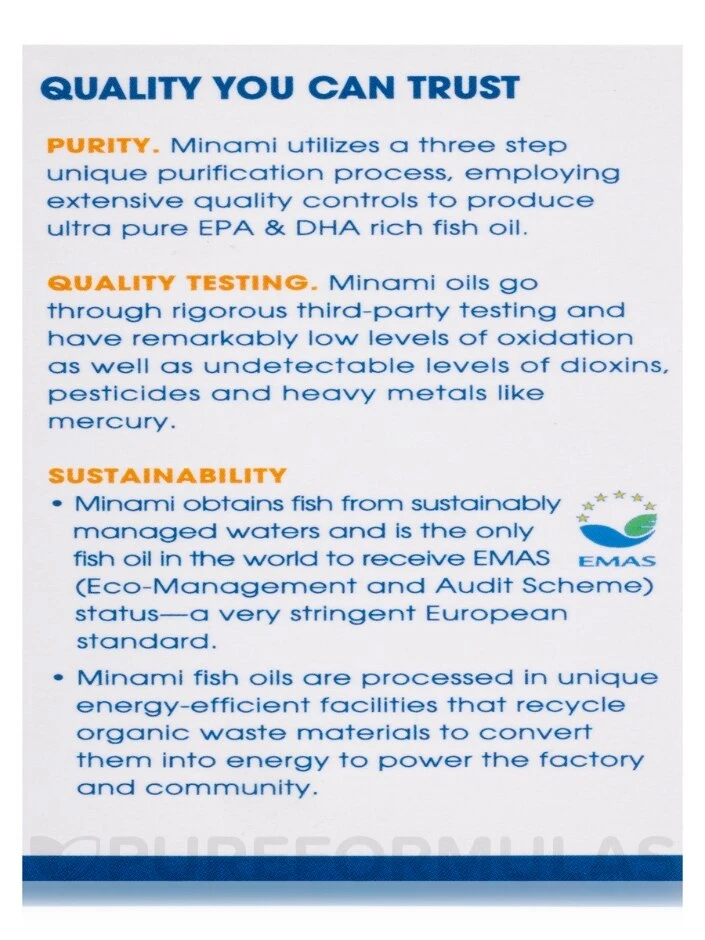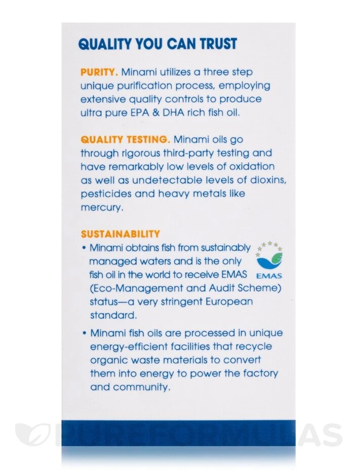 Get 850mg of Omega-3s in just one softgel with Minami Nutrition Omega-3 EPA-DHA Formula! It’s a highly concentrated 80% Omega-3 supplement made from the purest fish oil using the latest supercritical CO2 extraction technology. Unlike other fish oils, there’s no saturated fat included in this supplement, and it features a delicious orange flavor with no fishy aftertaste. This formula contains a 4:1 ratio of EPA (590mg) to DHA (130mg), and it’s designed to support cognitive, mood, and cardiovascular health.