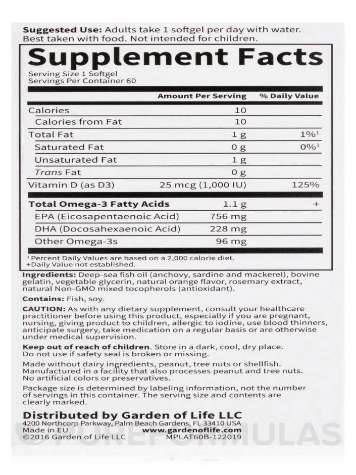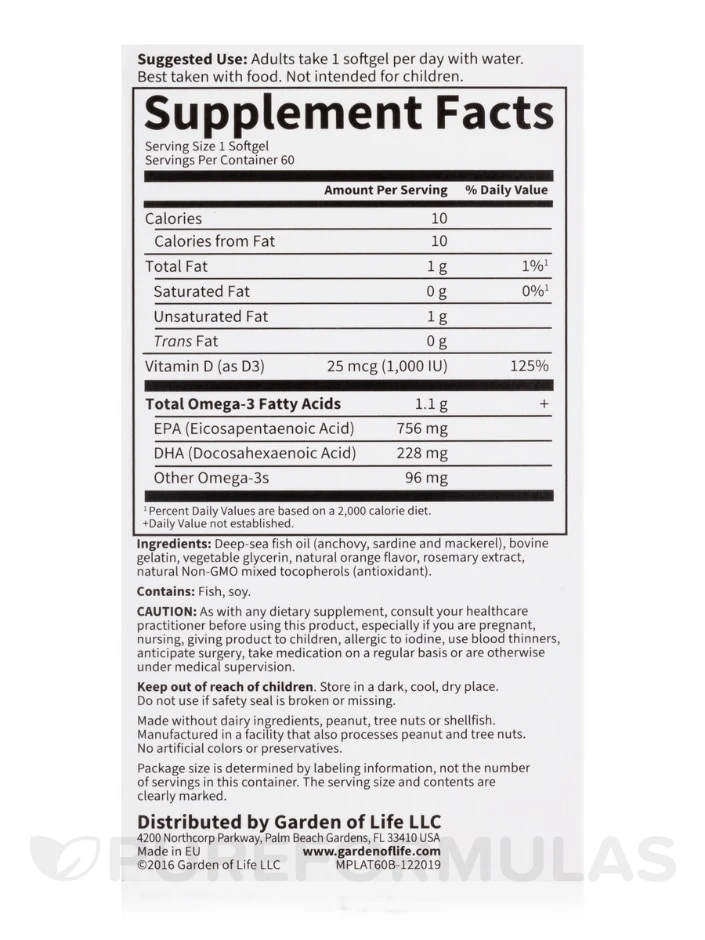 Minami Supercritical Platinum Omega-3 Fish Oil, Orange Flavor - 60 Softgels -Garden Of Life Shop images 615