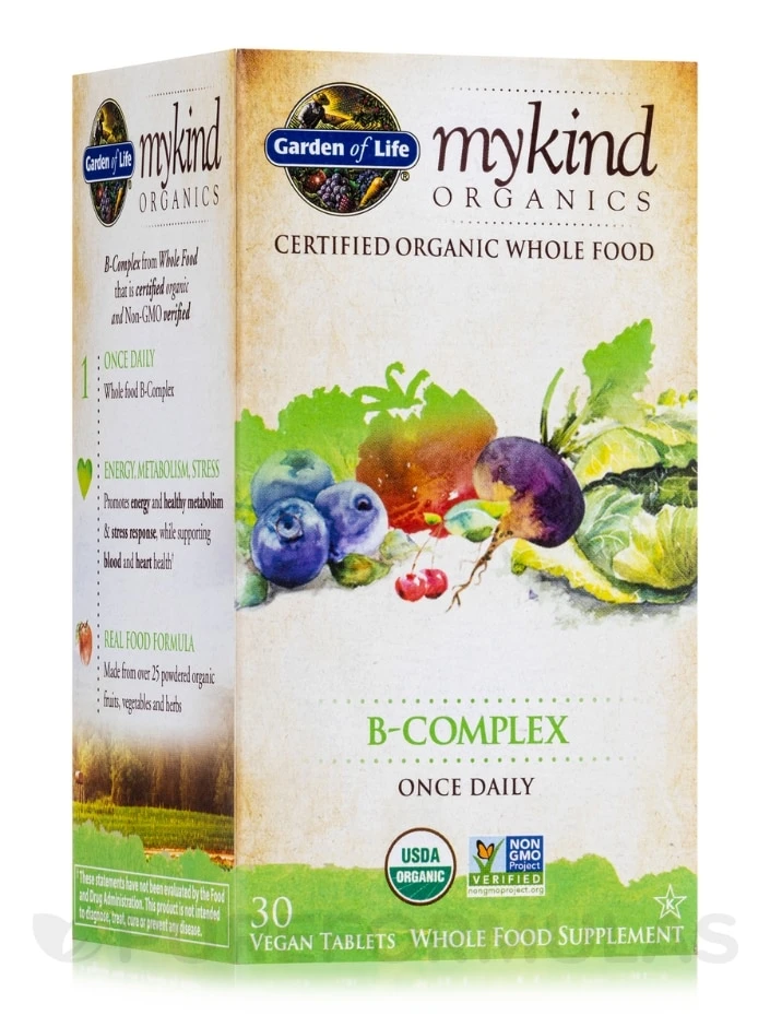 Get a Natural Energy Boost with mykind Organics B-Complex. This whole food supplement is jam-packed with certified USDA organic, non-GMO nutrients that come from over 25 wholesome ingredients! Experience convenience with a once-daily tablet and provide your body with the essential nutrients it needs to thrive.