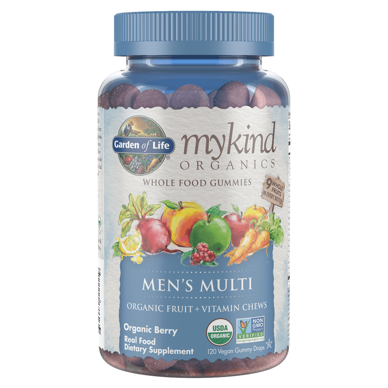 Certified USDA organic and non-GMO project verified, mykind Organics Men’s Multi Gummies are designed for men. A blend with nine organic whole fruits, they are free from synthetic vitamins, processed sugar and syrups, corn starch, or pig gelatine. Made with pectin from non-GMO apples and organic orange peel, they come in a tasty organic berry chew.