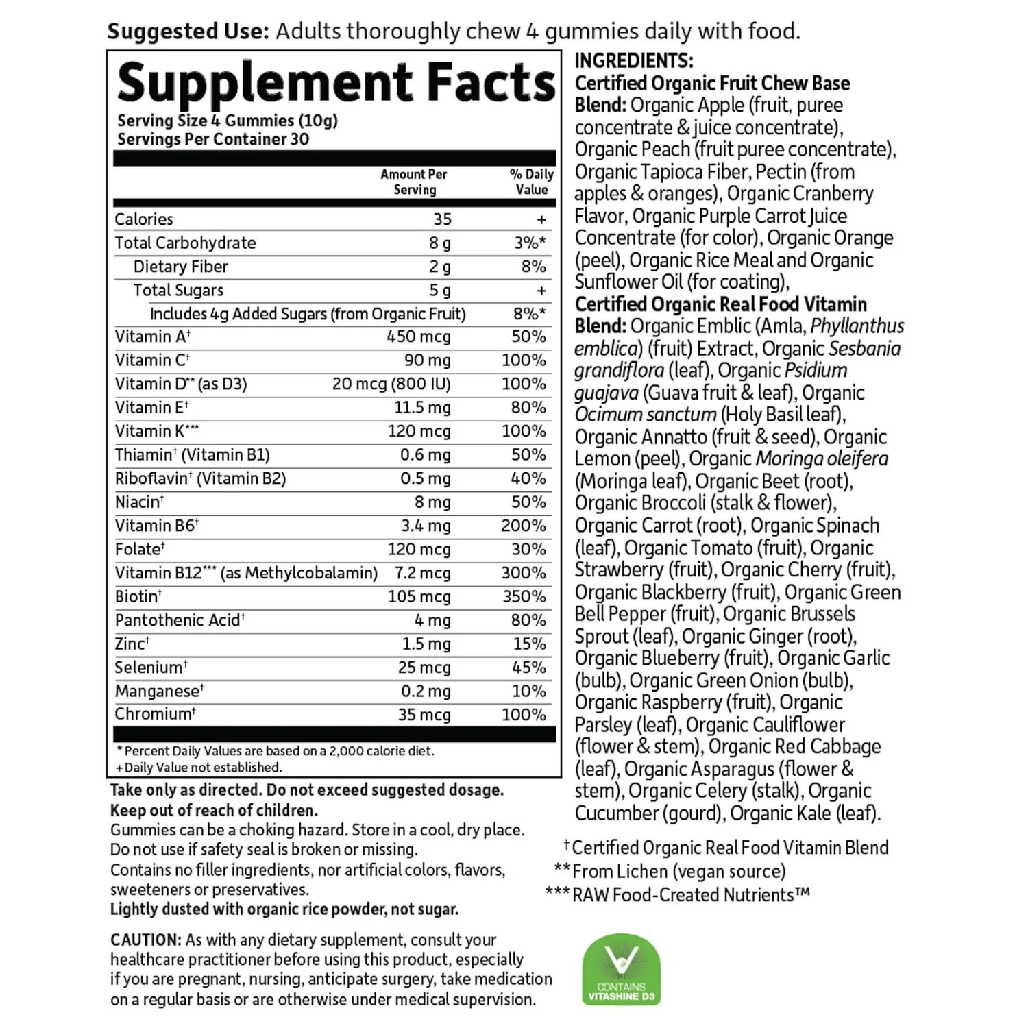 - Contains 800IU vegan vitamin D3