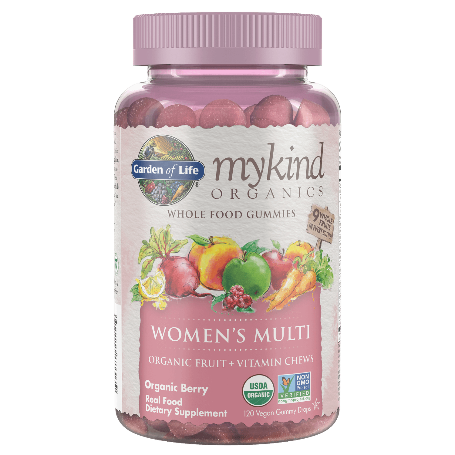 Made from only whole food ingredients including nine different organic fruits, certified USDA Organics and Non-GMO Project Verified, our Garden of Life mykind Organics Women’s Multi Gummies are specifically designed to support women’s health needs.