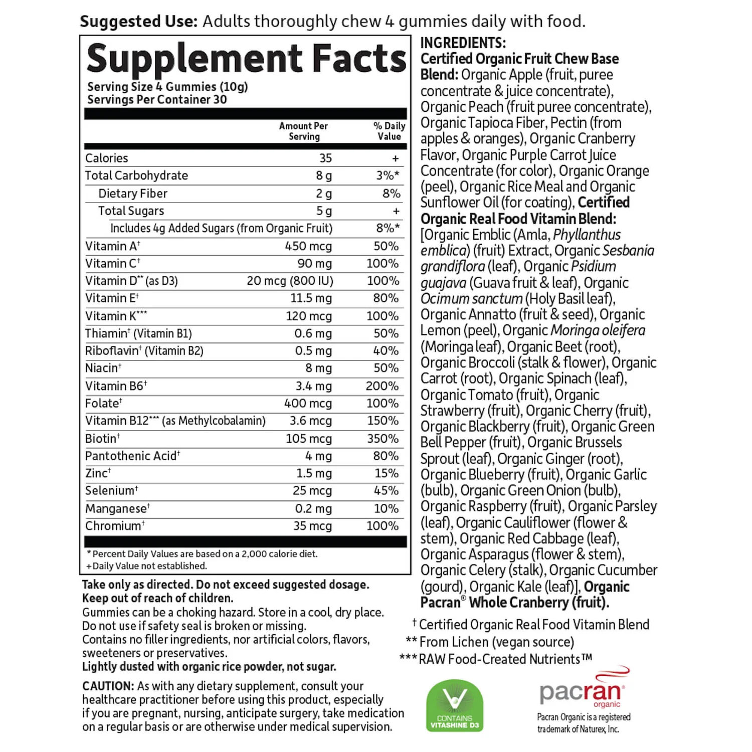 These delicious berry-flavoured gummies are packed with organic vitamins thanks to a unique blend of powdered herbs, vegetables and fruits, including cranberry extract.
