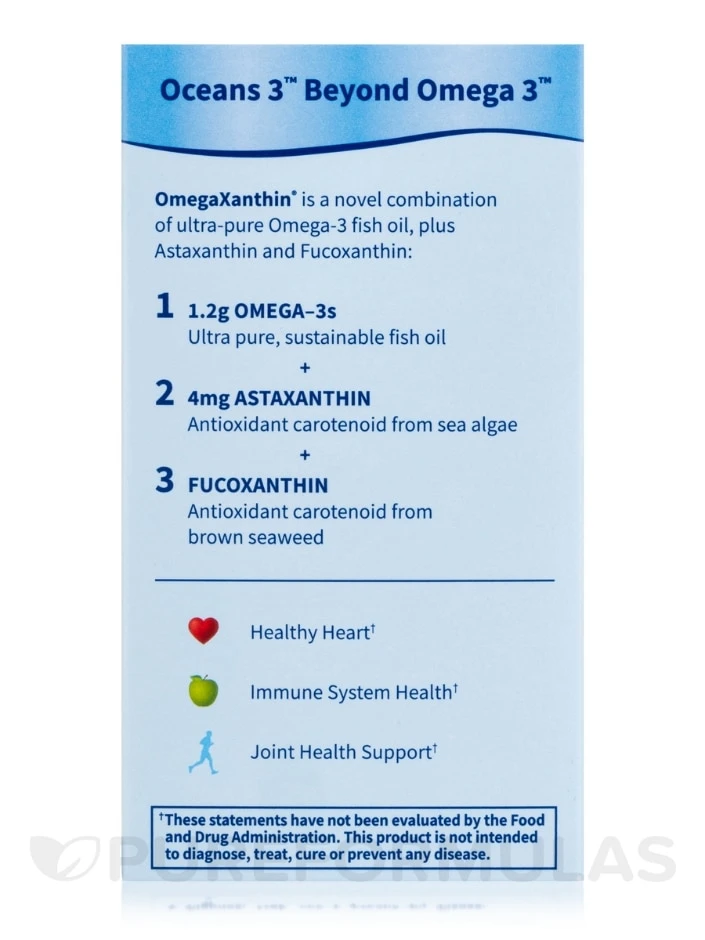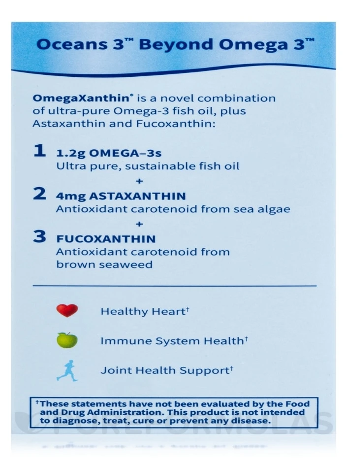 Get MORE out of your Omega-3 supplement with Oceans 3 Beyond Omega-3. This powerful supplement includes OmegaXanthin®, a special blend of THREE ocean-based compounds that promote optimal health. Not only does it provide the benefits of a high potency Omega-3 supplement, but it also includes two powerful antioxidants for even MORE benefits. Try Oceans 3 Beyond Omega-3 for an unmatched amplified range of health benefits.