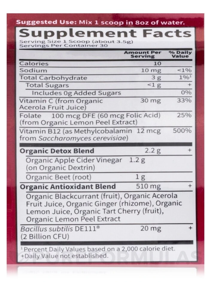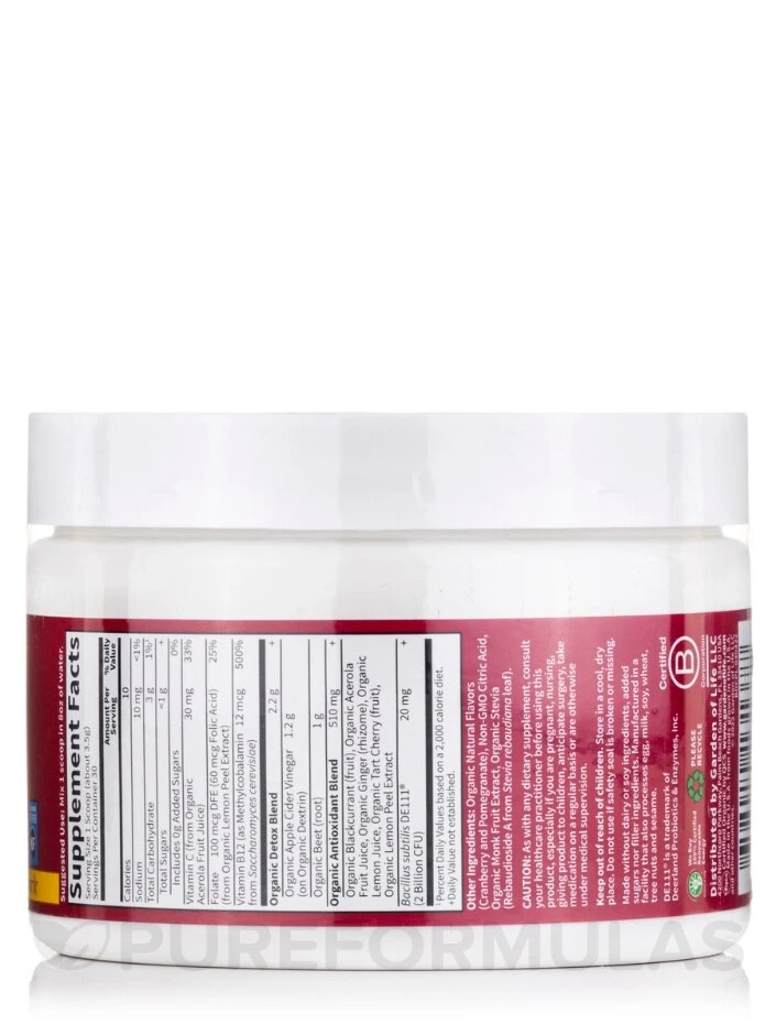 Start your day strong with Garden of Life’s Beets Detox – a delicious blend of key ingredients that support your body’s natural detoxification system. Packed with essential nutrients like Betaine and Folate that help boost cellular health. Additionally, beets play an active role in supporting healthy liver function. With 1.2g organic apple cider vinegar, this powder is unrefined and fully fermented, providing you all its desired benefits. Choose the delicious Cranberry Pomegranate flavor, certified USDA Organic, Non-GMO Project Verified, Certified Vegan, and Kosher.