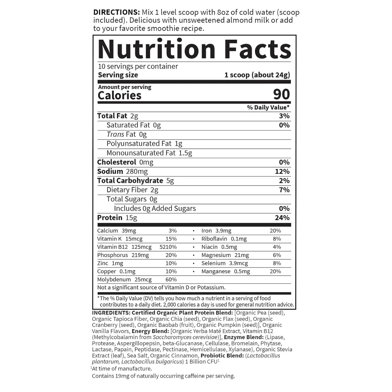 Each scoop of our Organic Plant Protein Energy Powder contains 15g of high-quality organic protein, rich in essential amino acids, as well as 3g of naturally occurring branched-chain amino acids.