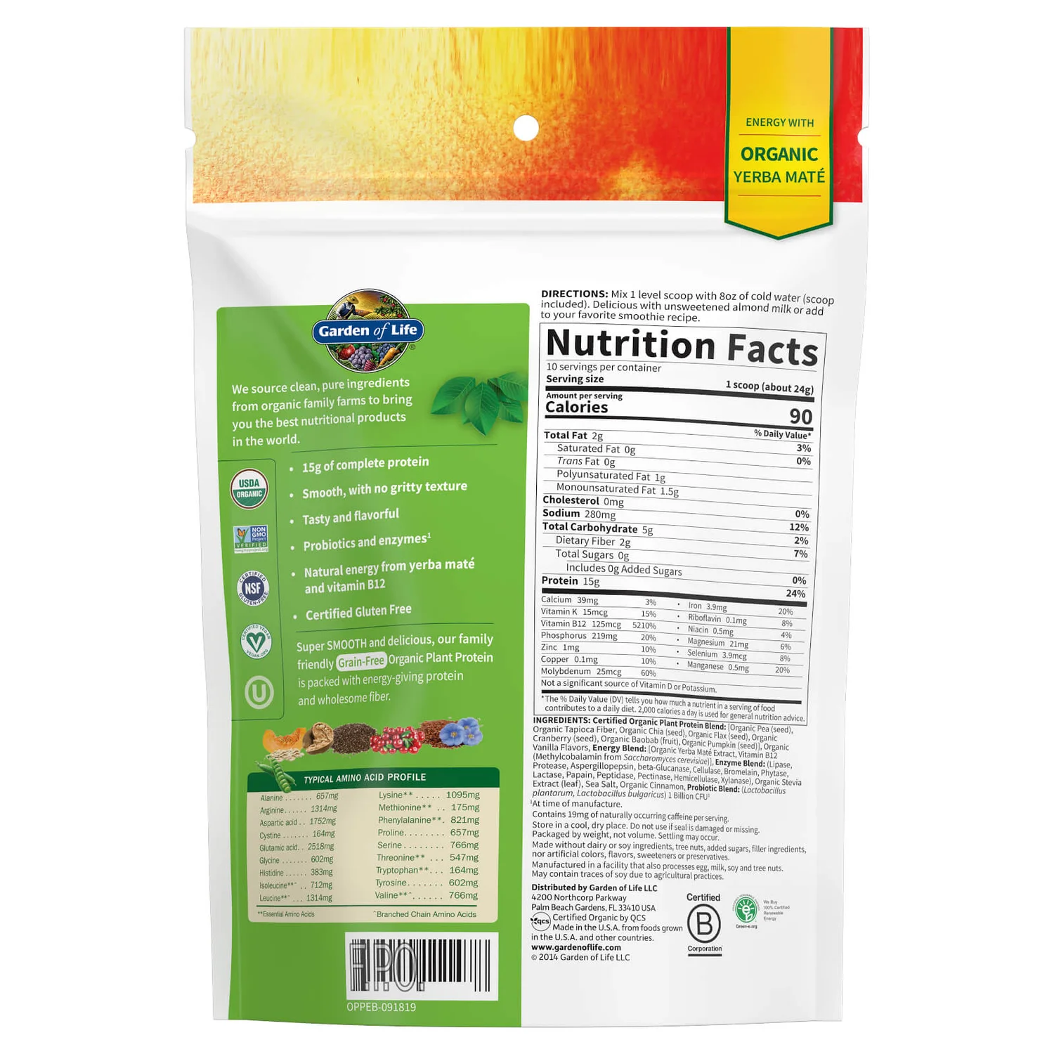 Featuring seven different grain-free organic plant proteins, Garden of Life Organic Plant Protein Energy Powder is ideal for adding to shakes and smoothies to keep you feeling satisfied on the go or after a workout.