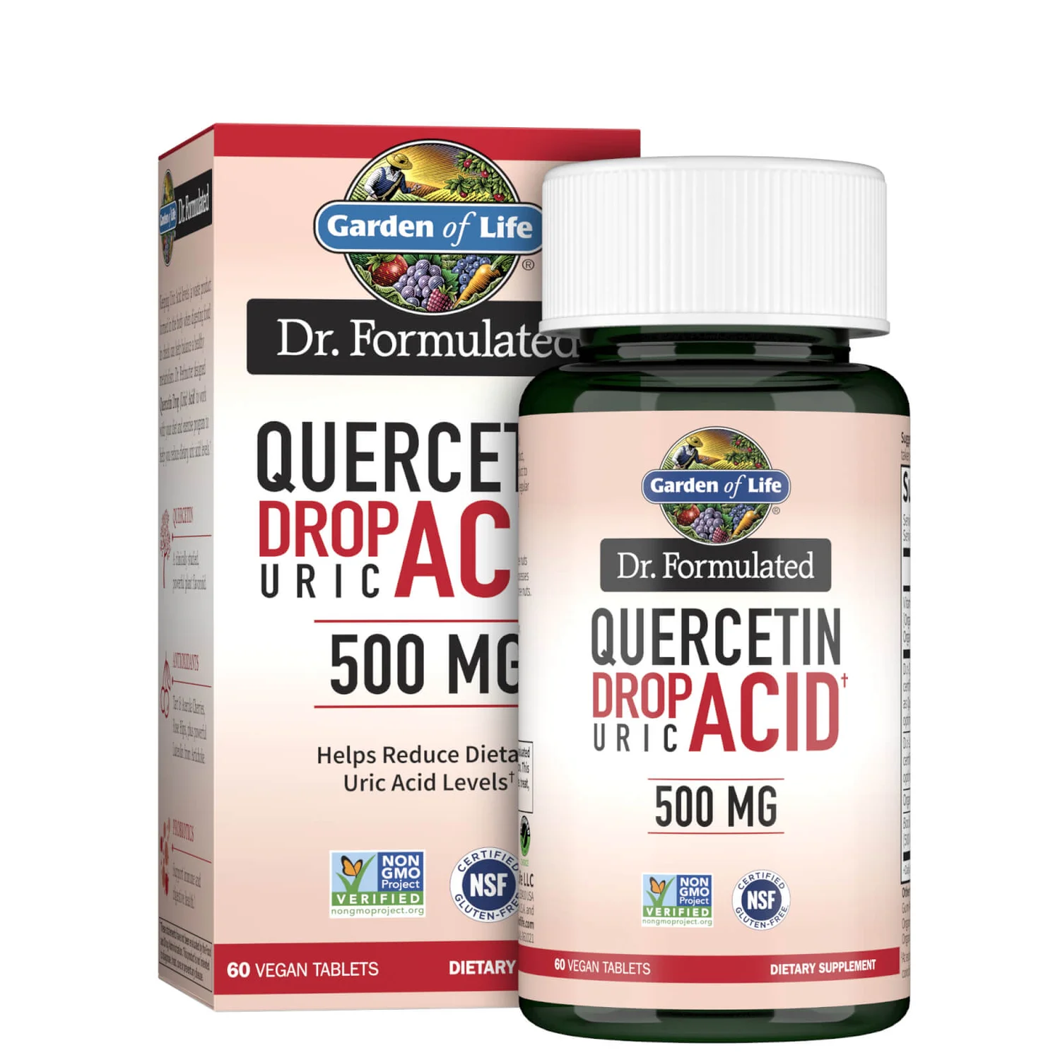 Quercetin 500mg Drop Uric Acid is Non-GMO Project Verified, NSF Certified Gluten Free, Informed Choice, and Carbon Neutral Certified.