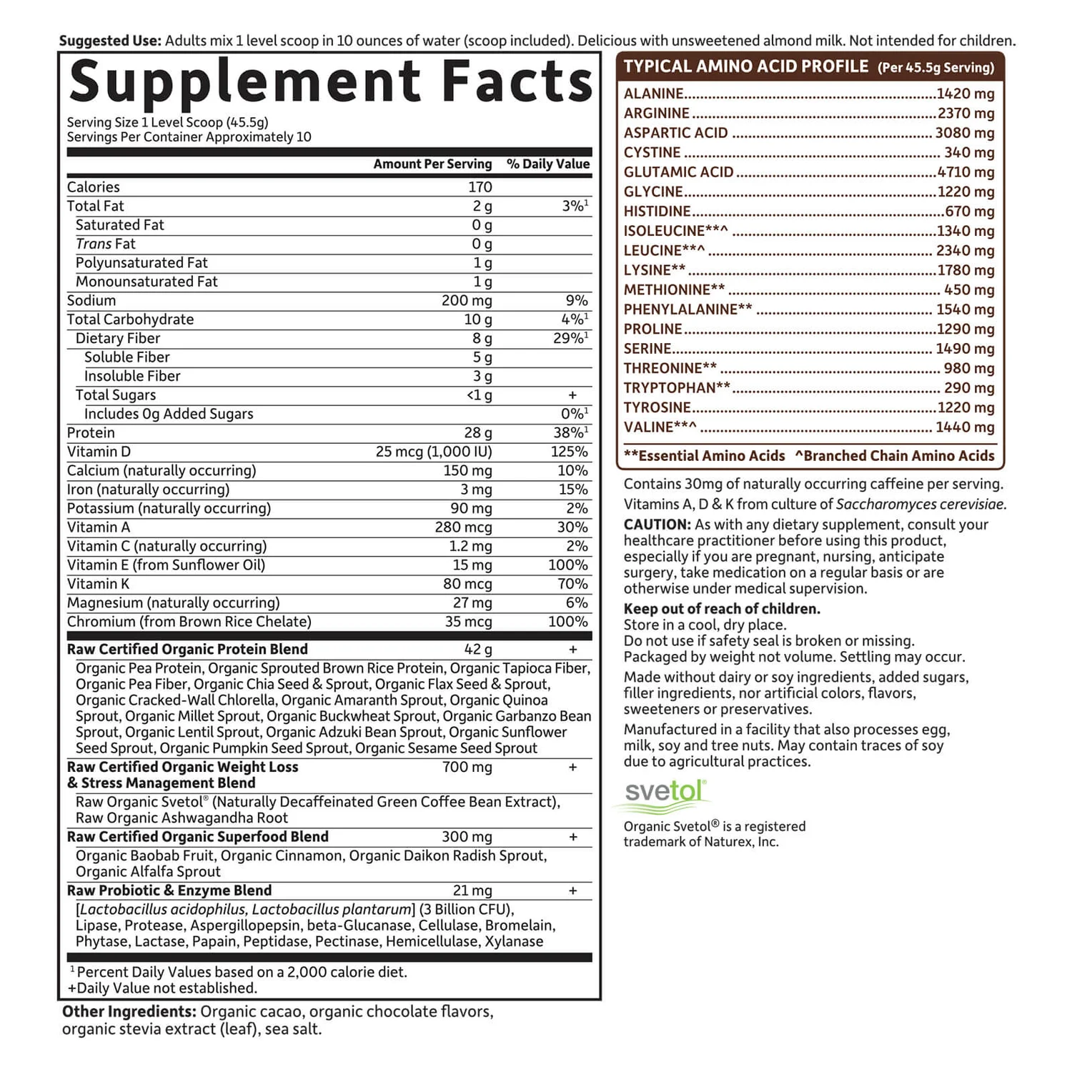 Raw Organic Fit differs from our other proteins because it has several additional clinically studied ingredients, including Svetol® Green Coffee Bean Extract, Raw Food Created Chromium and Organic Cinnamon to help you burn fat[2], and maintain healthy blood sugar[3]. Our Certified Organic plant proteins in Raw Organic Fit are produced at low temperatures, preserving their complete amino acid integrity.