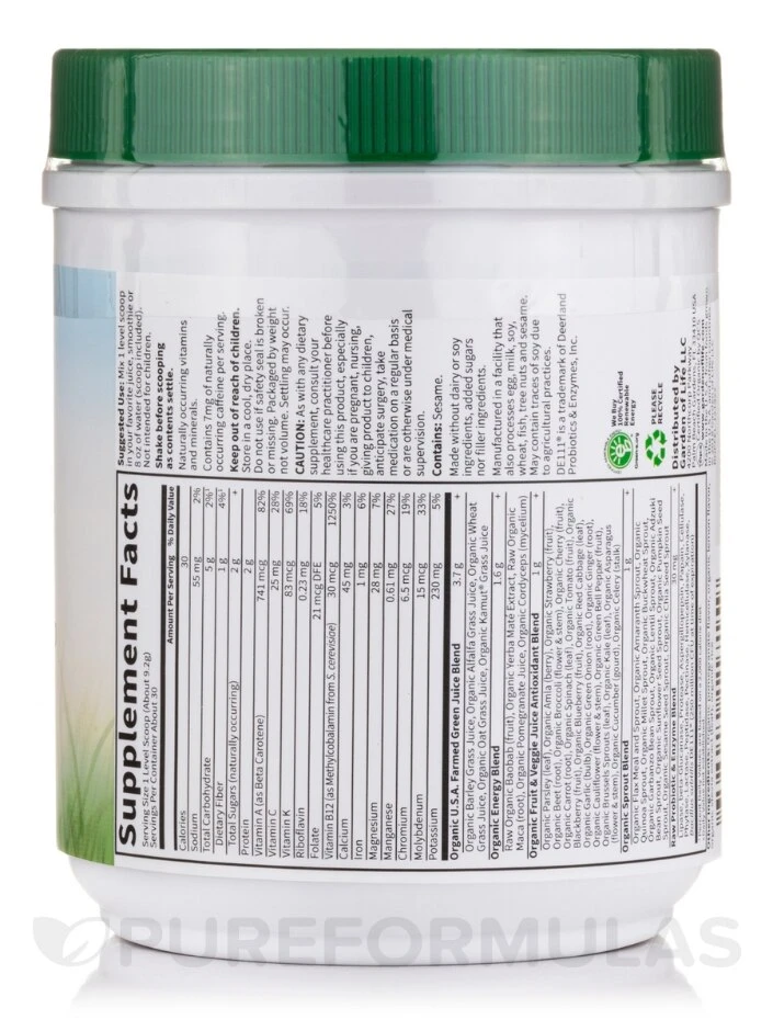 Experience the ultimate in organic nutrition with Garden of Life’s CERTIFIED ORGANIC Greens. Grown sustainably by family farmers right here in the USA, the greens are harvested before the formation of gluten, then immediately juiced and gently low-temperature dried on-site. This results in a powdered form which is highly bioavailable and packed with concentrated nutrients, including Chlorophyll. Put the GREEN IN YOUR GREENS and nourish your body with pure, organic goodness!