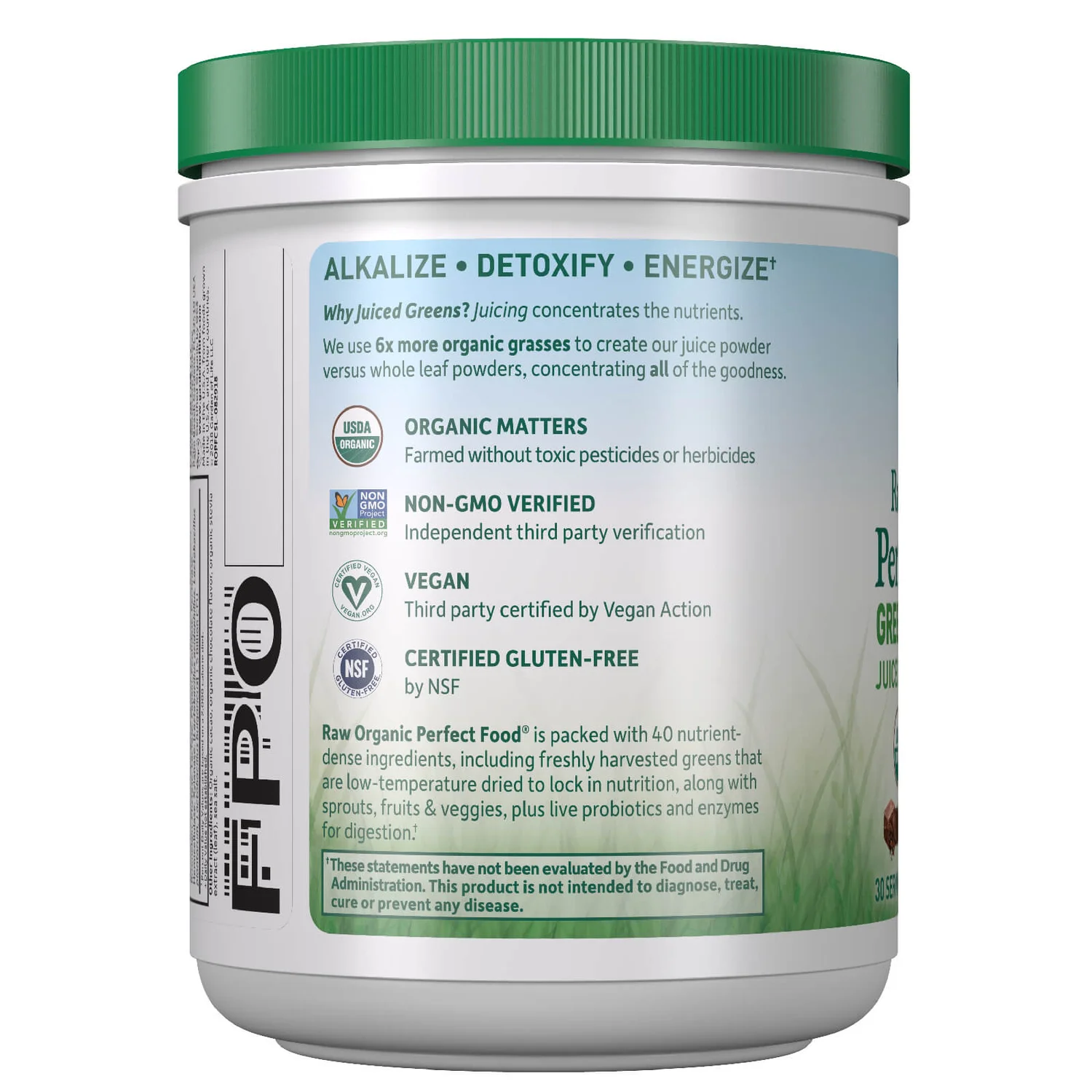 Packed with 40 nutrient-dense, RAW and organically grown greens, Raw Organic Perfect Food Green Powder is certified USDA organic and non-GMO Project verified. Our Raw Organic Perfect Food grasses are juiced at the farm, straight after picking, using cold temperatures to dry them. This all takes place within an hour of harvesting.