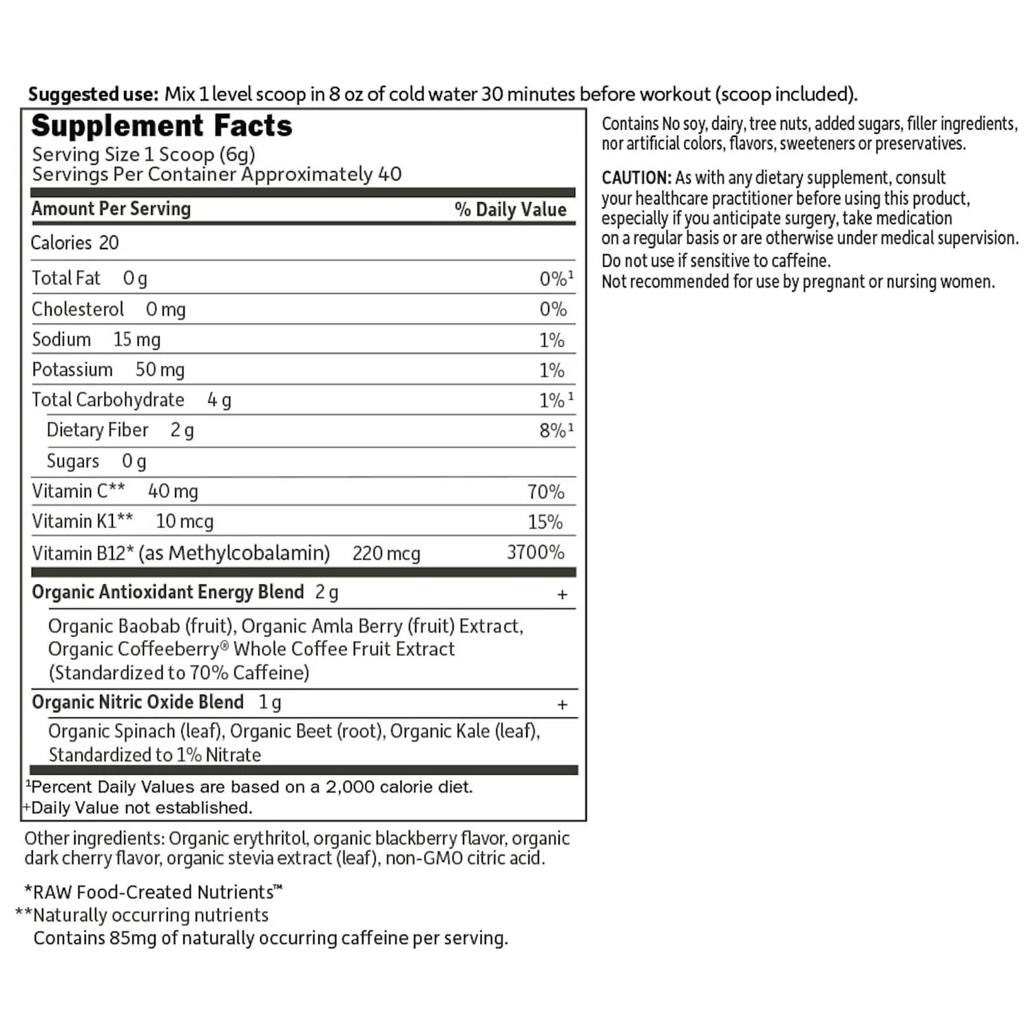 USDA organic, non-GMO, NSF Certified for Sport and Informed-Choice for Sport certified, elevate your training session and support your energy levels with this pre-workout powder.