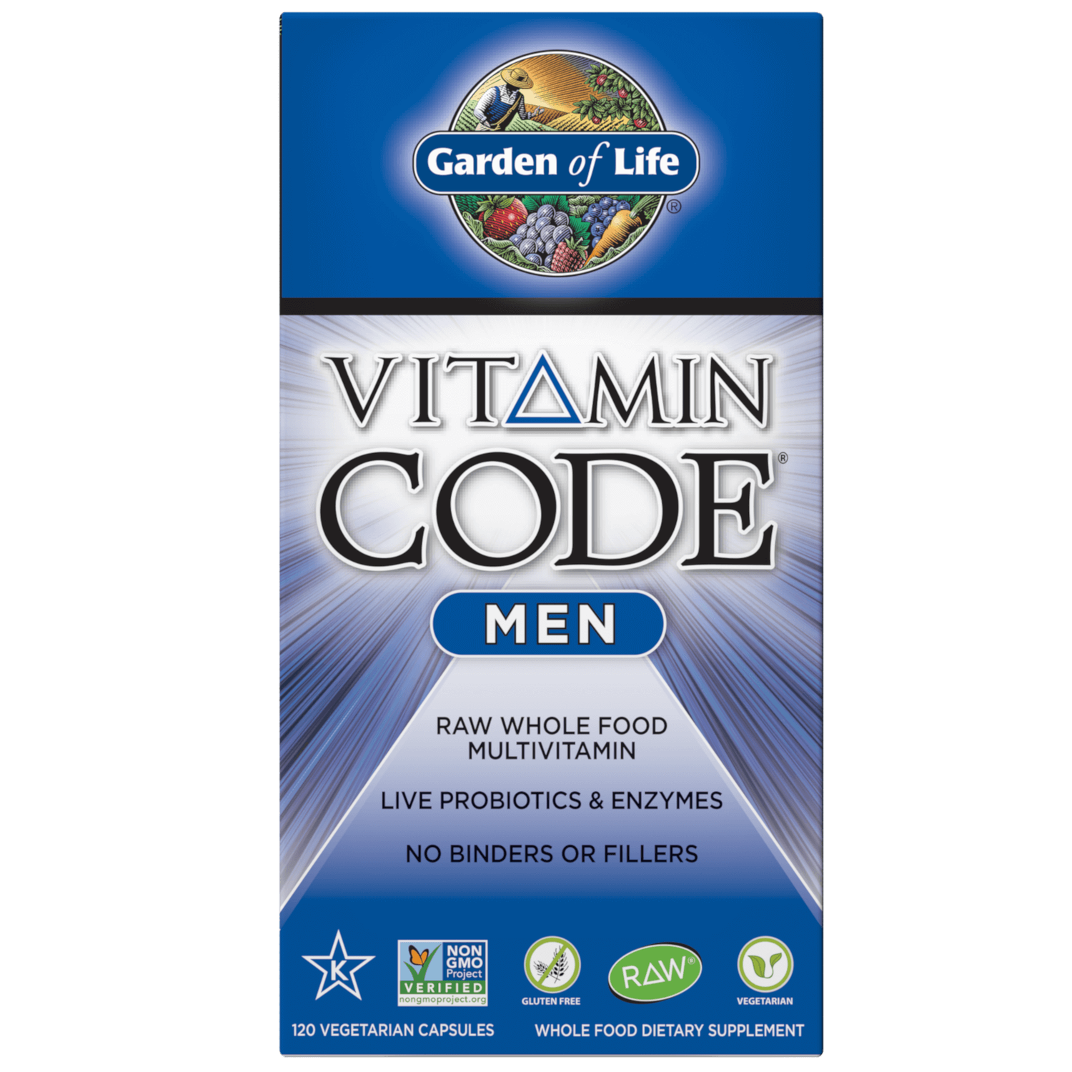 Garden of Life Vitamin Code Men Capsules are a whole food dietary supplement formulated specifically for men, made with a diverse mix of live bacteria and enzymes, and containing 19 vitamins and minerals. These vegetarian capsules are produced below 46ºC for freshness and feature raw whole food nutrients.