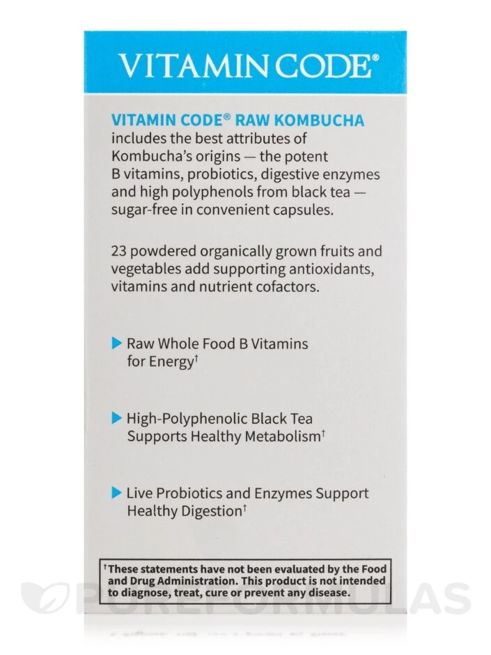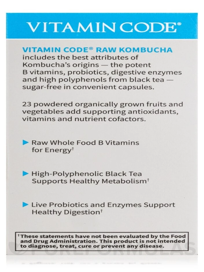 Experience the benefits of kombucha without the added sugar with Vitamin Code RAW Kombucha capsules. Packed with powerful B vitamins, probiotics, digestive enzymes, and high polyphenols from black tea, this supplement delivers all the best attributes of kombucha straight to you.