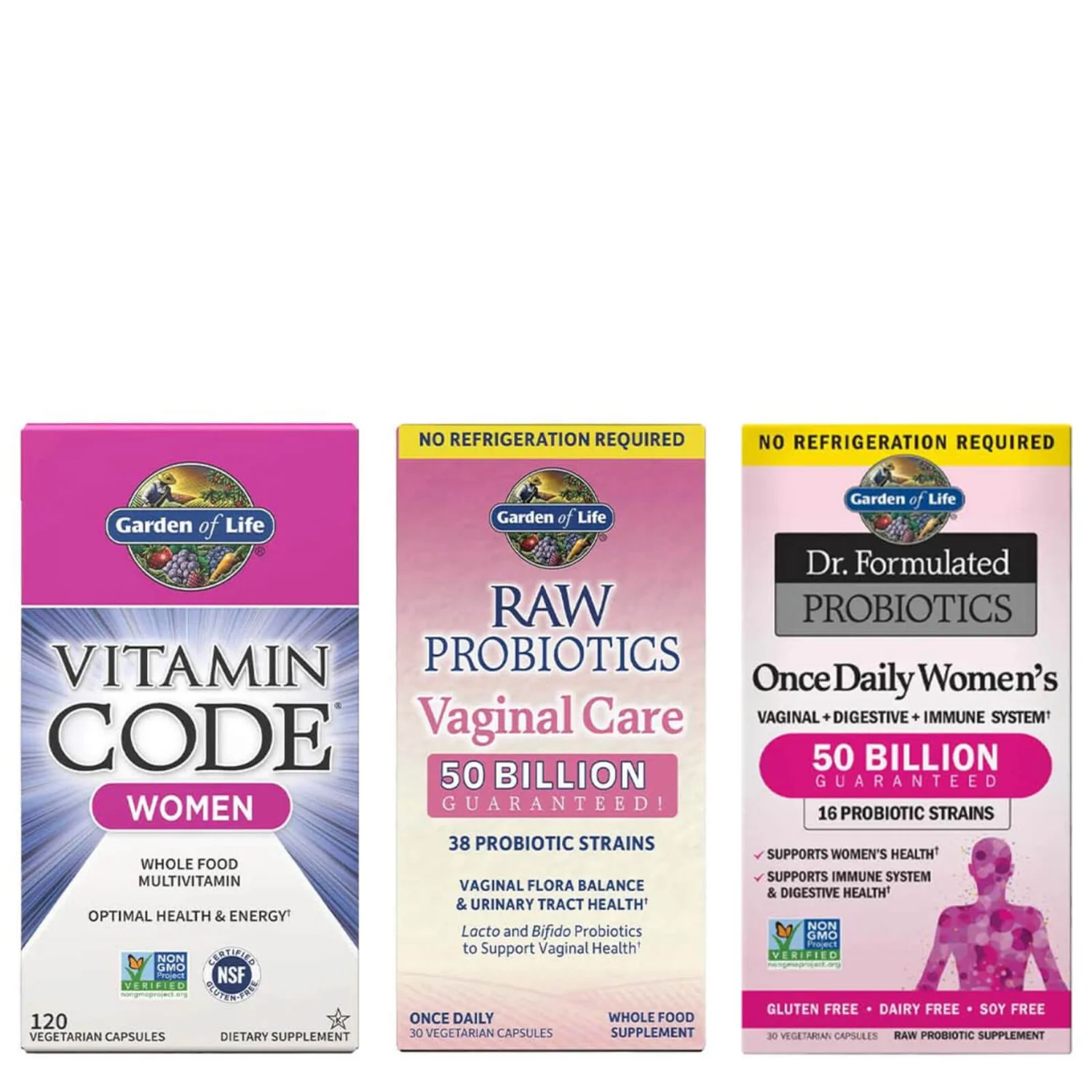 Microbiome and vitamin supplement bundle to support women’s health needs.